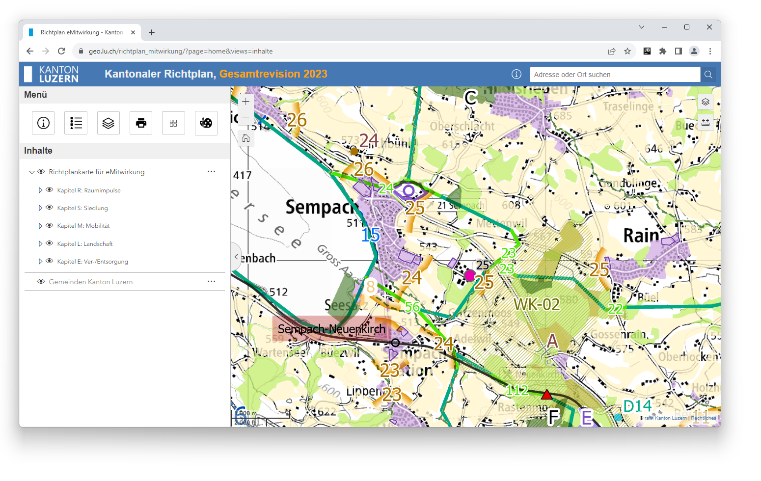 Nutzen Sie über 250 vom Kanton bereitgestellte Datenprodukte und eine grosse Auswahl an Grundkarten, um schnell und unkompliziert eigene Karten zu erstellen.