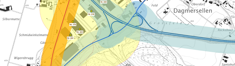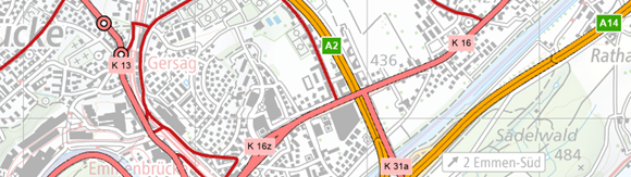 Fahrzeuge, welche den Vorschriften über Masse und Gewichte nicht entsprechen, dürfen nur mit einer Sonderbewilligung verkehren. Die Karte zeigt Ausnahmetransportrouten und deren Einschränkungen bezüglich Höhe, Breite und Last.