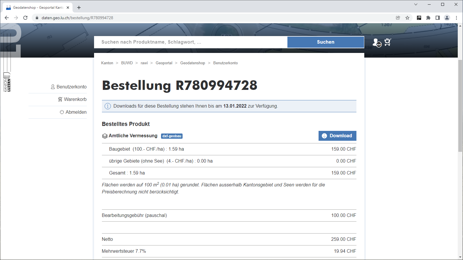 Geodatenshop: Benutzerkonto