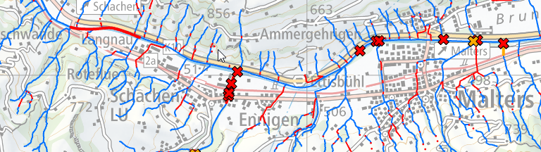 Fahrzeuge, welche den Vorschriften über Masse und Gewichte nicht entsprechen, dürfen nur mit einer Sonderbewilligung verkehren. Die Karte zeigt Ausnahmetransportrouten und deren Einschränkungen bezüglich Höhe, Breite und Last.